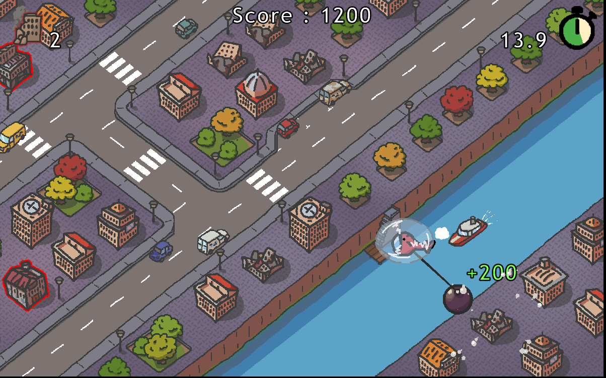 This is a short 2D games where you pilot an helicotper attached to a wrecking ball !