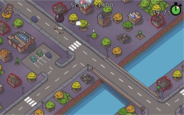 Destroy delericts building while avoiding hospitals, drones and more, and be as fast as you can to get a higher score !